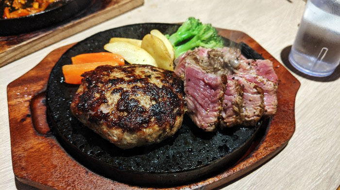 そして、納品でなくハラミステーキとデミグラスハンバーグのセットを注文。