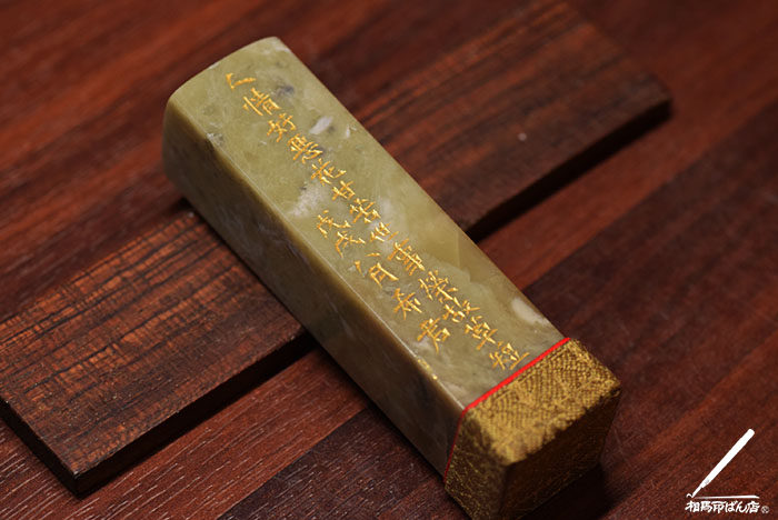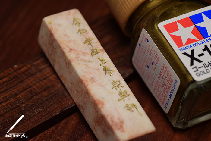昨年末、希夷斎様から頂いた印には、金色に染められた側款が綺麗に入っており、私も金色を入れることにしました。