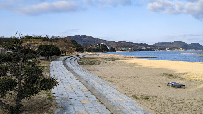 24日の朝は、香川県山田海岸のキャンプ場でした。