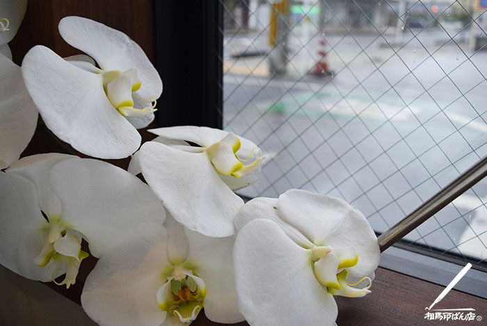 1月中旬にスタッフUさんが、持ってきてくれた胡蝶蘭の切り花が、店内で2ヶ月以上も1つの花が落ちることなく店内を彩ってます。