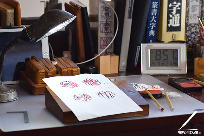 午前中は、実印の仕上げて、午後は印稿をもとに4本に着手します。