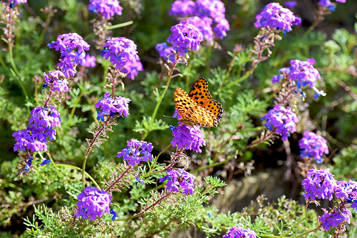 今朝、庭の花を撮影しようと思いましたが、日陰の部分がほとんど諦めていましたが、近くの花に蝶が蜜を採取しに来てたので撮ってみました。