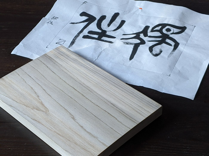 今回、刻字は苦手な金文で挑戦。文字は、『独住』