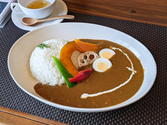 午前中から昼過ぎに掛けて、大印展の半紙の部、刻字の部の文字構成について練ってました。また、昨日は角井師匠の篆刻の講習会が3時まで行われるので、終わり際に行って練った書を見てもらおうと思い、2時過ぎに高鍋町蚊口浦にあるカレーカフェ静に行って昼食。