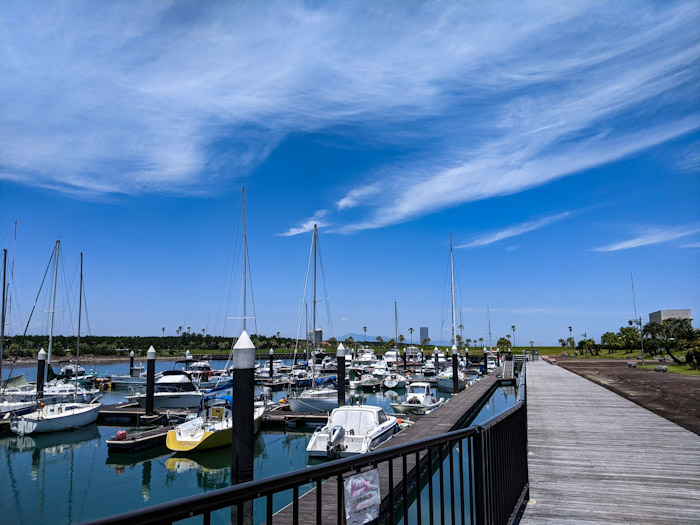 昼頃にサンビーチ一ツ葉に行くと海水浴場の方は封はされてて、ヨットハーバーの方の駐車場に停めて、端から端まで散歩。