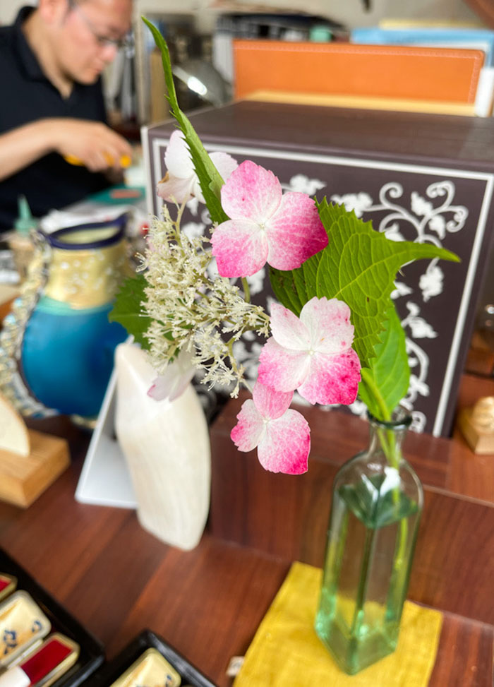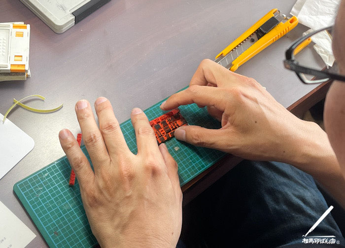 今回は、住所・屋号・代表者名・電話番号と4行切り離せるタイプのゴム印での作業になります。
