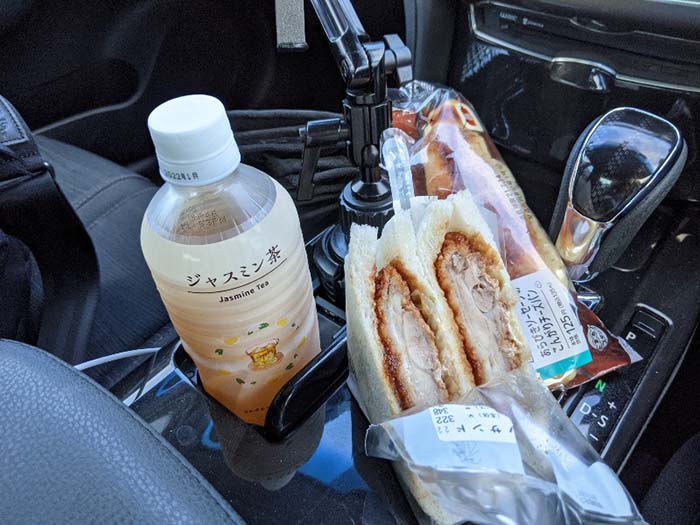 ローソンともゆきでサンドイッチと飲み物を買って50分のドライブ。