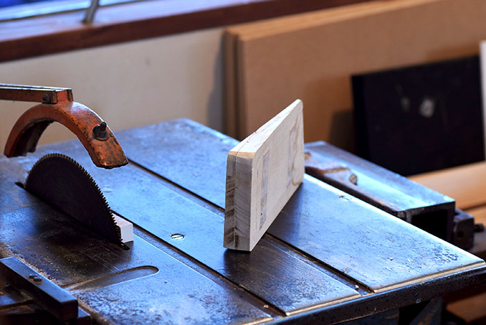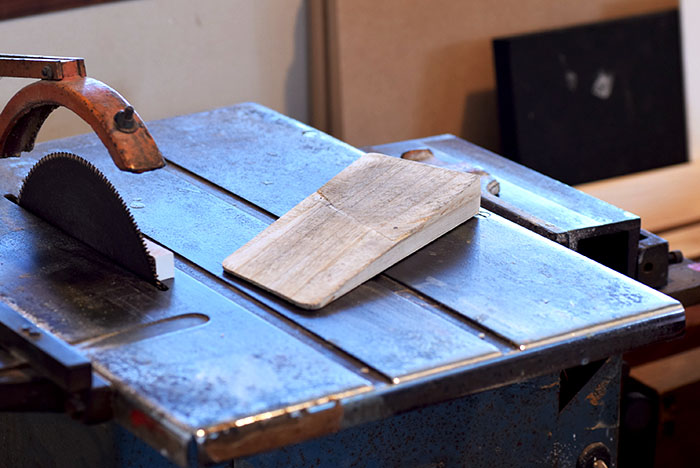 そこで左足で踏ん張ってシートに体を押し付けることで問題解決しようと思って寝ているフットレストを起こすために板を削って作ってみました。