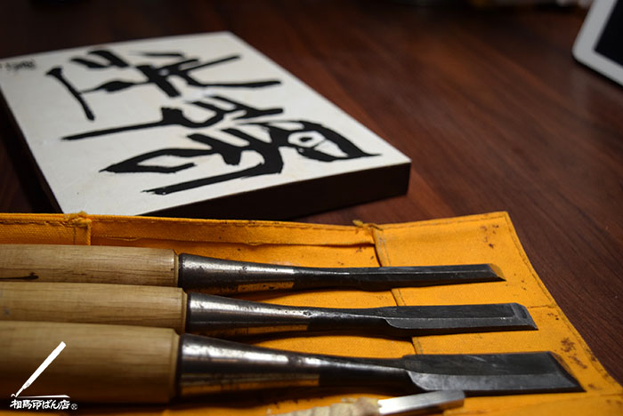 板に文字を刻すこと。昭和初期まで看板、表札はほとんど刻字です。