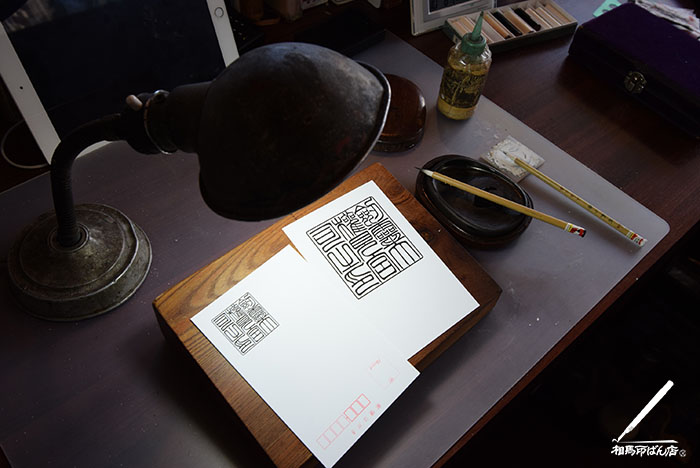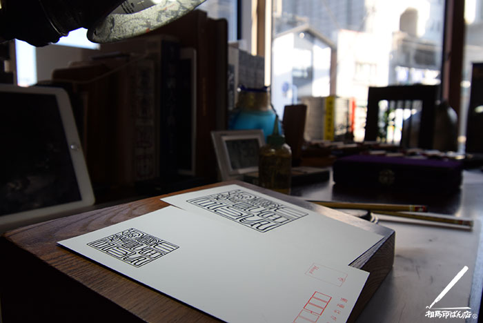 木口(印鑑)なら彫った後に仕上げで微調整ができますが、ゴム印は作り上げてしまうと、微調整する仕上げが掛けられないで、印稿の段階で完璧な状態にもっていくので、通常の印稿を書く以上に神経をつかいます。