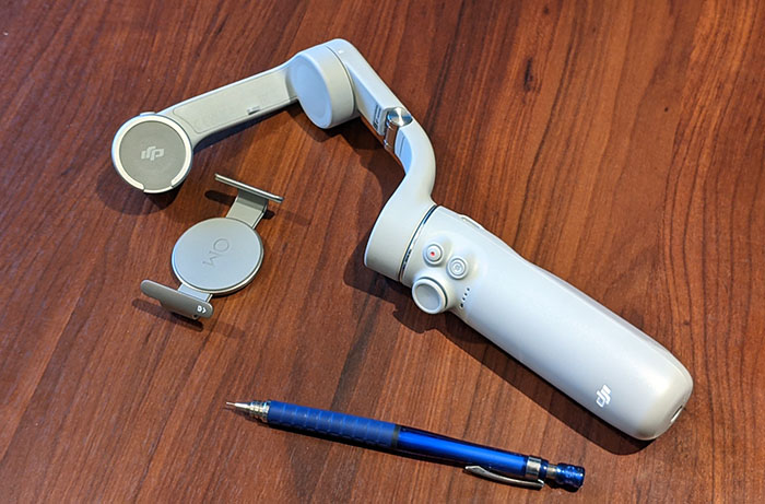 DJIのOM5(ジンバル)の解説動画を聴きながら印稿の下書きを書いていると、自動で顔認識したり、スマホ画面で追跡する物を指定すると自動追尾機能もあるって言ってたので、OM5を取り出して三脚に固定してみました。