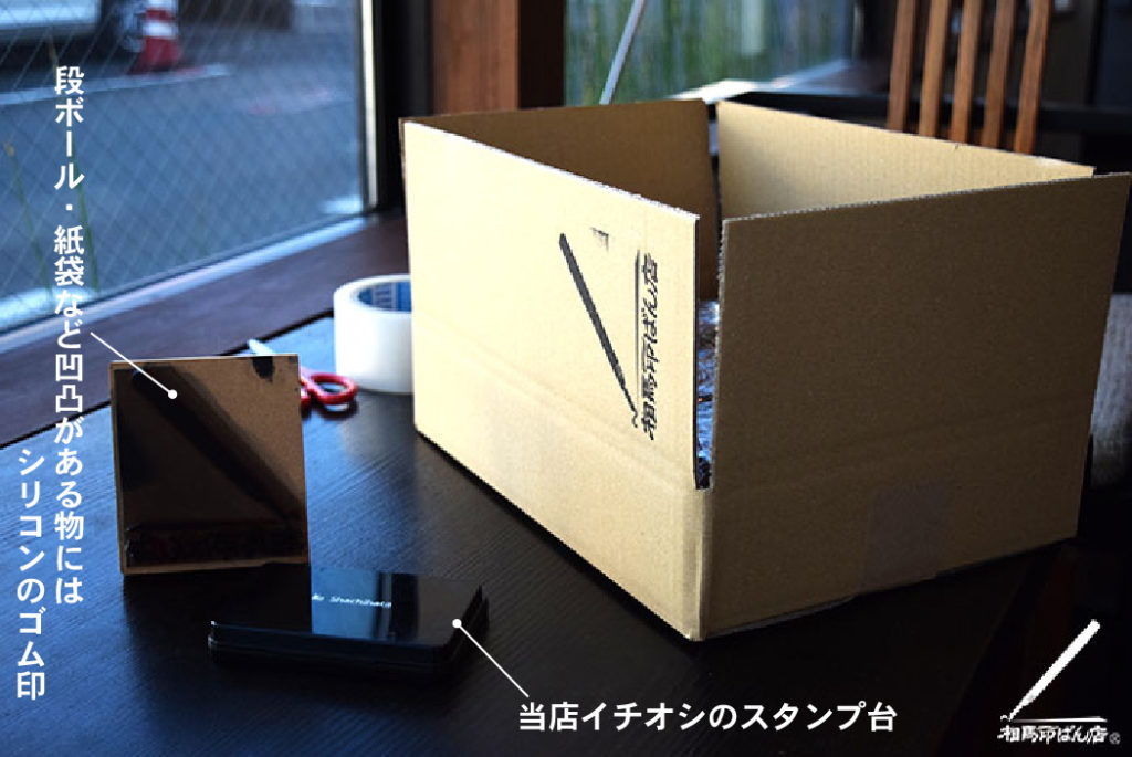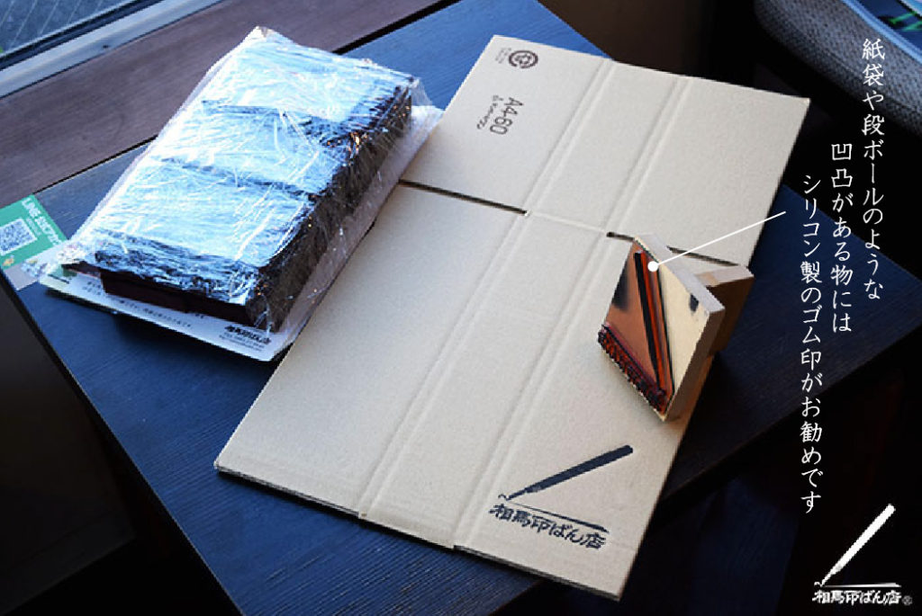 段ボールや、紙袋は凹凸があるので赤ゴムでは捺印しづらいこともあります。