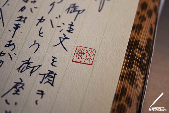 大きさは、落款印より小さく一筆箋の場合は8mm角以下を使います。