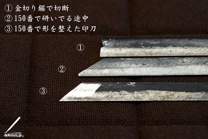 ②:150番のダイヤモンド砥石で刃物を形をつくっていっている途中。