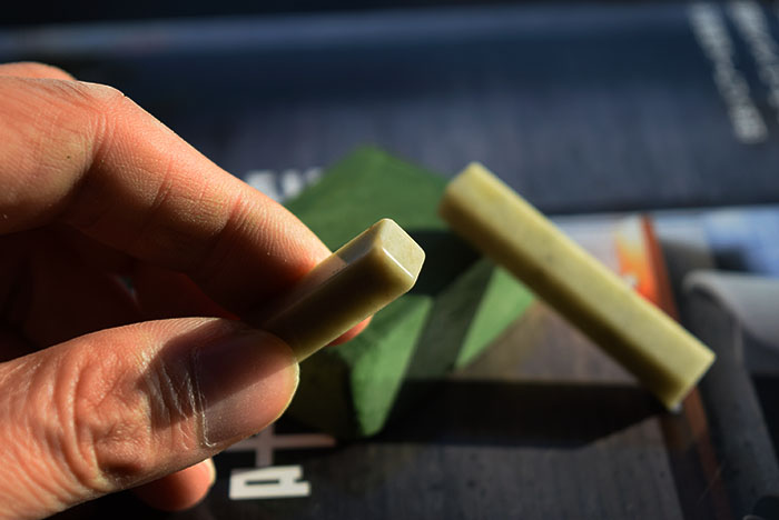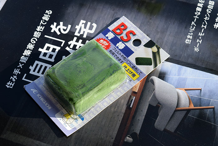 ハンズマンまで行く余裕がなかったので、近所のナフコに行ったら小さな固形研磨剤はありました。
