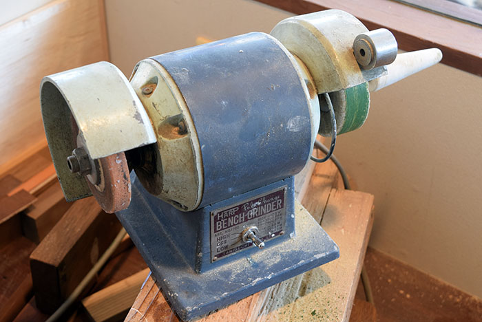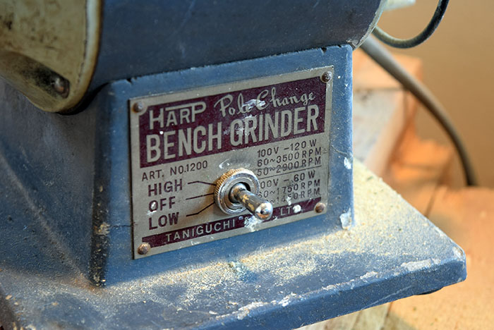 1本磨き終えた頃に印材をバフに当てると回転が止まるほどに遅くなっていった。2本目は、軽く当てるように磨いたが、グラインダーの青い本体に触るとかなりの熱を持っていたので中止。