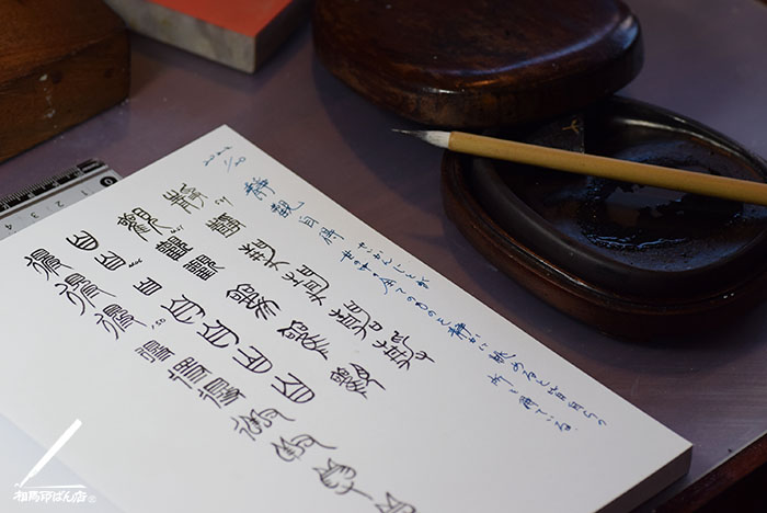 辞書から文字を拾い出して、どの字形にするか吟味してから草稿。