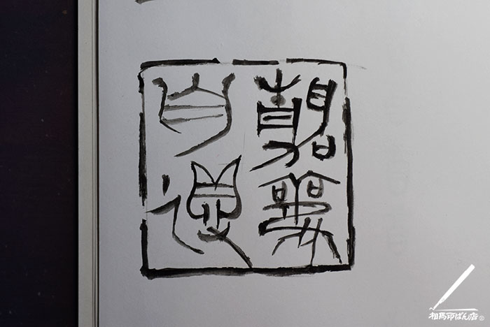 5cmの大きさで作るとしたらこんな感じかと書いたが、左斜めの斜線が多く目立つので、これをどうするか考えながら印稿を書いていきます。