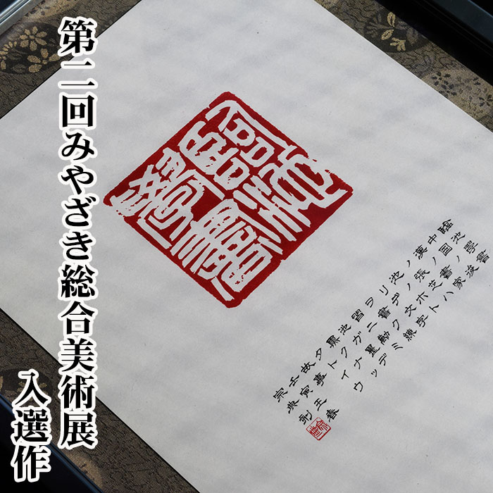 美術展の搬入が始まったという記事で搬入日を知って、その日から予定していた作は捺印すると文字が朱色になる朱文なので時間が掛かるので取り止めにし、過去の白文(捺印すると文字が白になる印)の印稿から選び出して2日間で仕上げて出した作です。