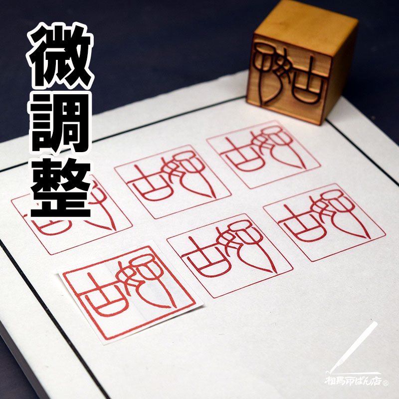 ひと通り仕上げを掛けて終えると捺印して印影を確認。