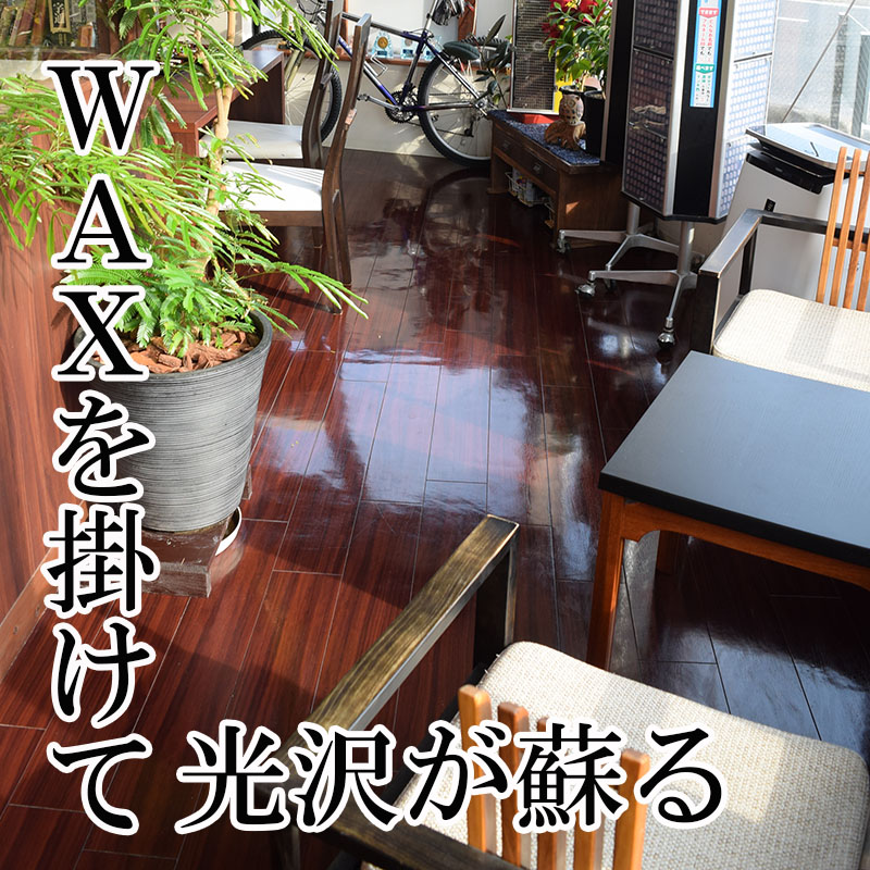 5ヶ月半ぶりのワックスだったので、1度では光沢が出ないとこもあり2度掛けで床全体に光沢が蘇りました。 床が綺麗だと気持ちいい。