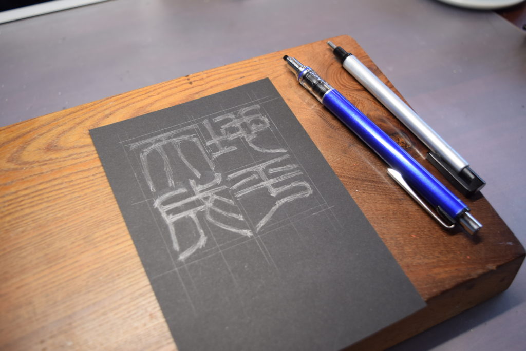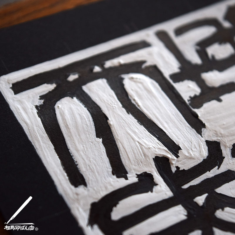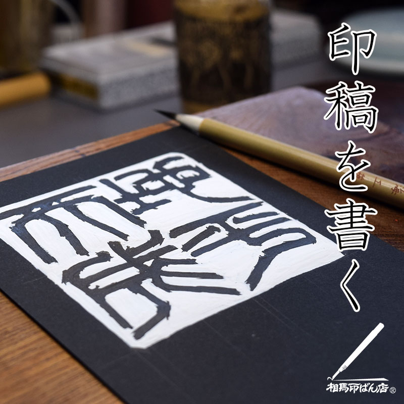 今回の作は、白文なので刻さない部分を白で塗って、刻していく文字の部分を墨で塗っていきます。