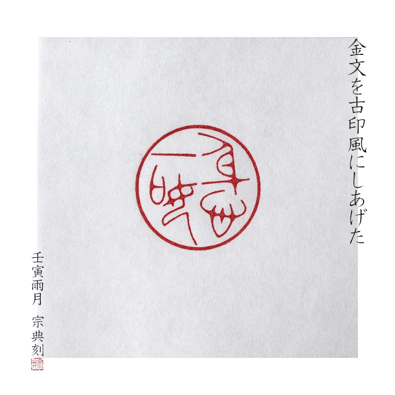 もう一顆は、金文を古印体風に線と線の交差に墨だまり設けました。