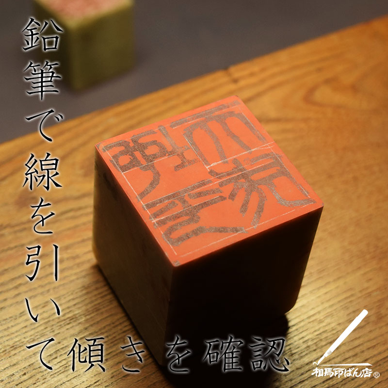 先々週、印稿を書き上げていたので、印面に転写して鉛筆で罫線を引き傾きを補筆しながら調整していきます。