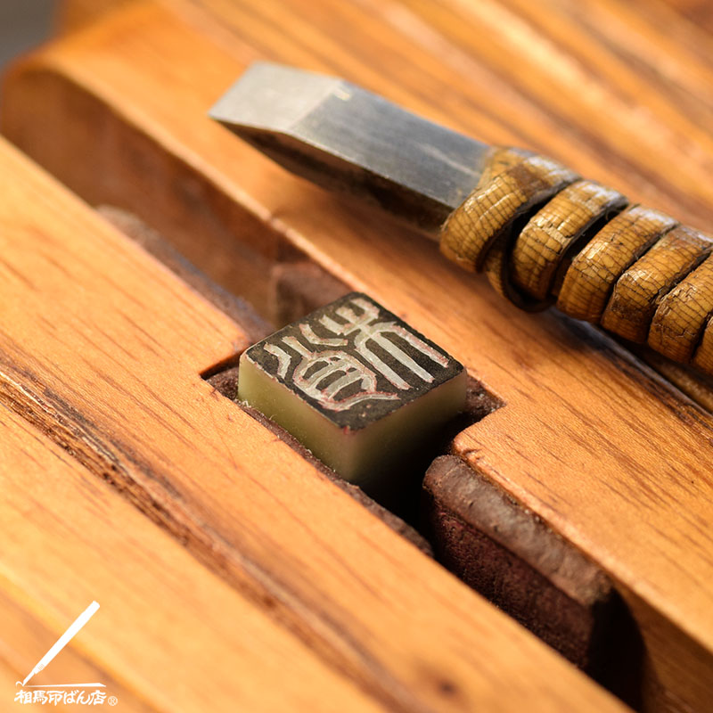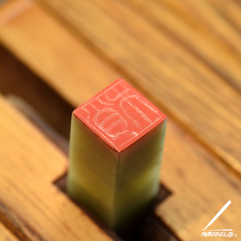 刻す位置は、印材を右手で持った時に見える面に刻します。