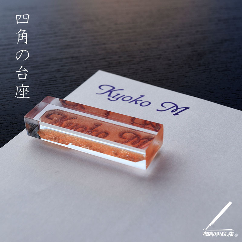 試作品で握り手がない四角のアクリル台木でゴム印をつくってみました。