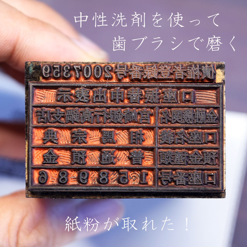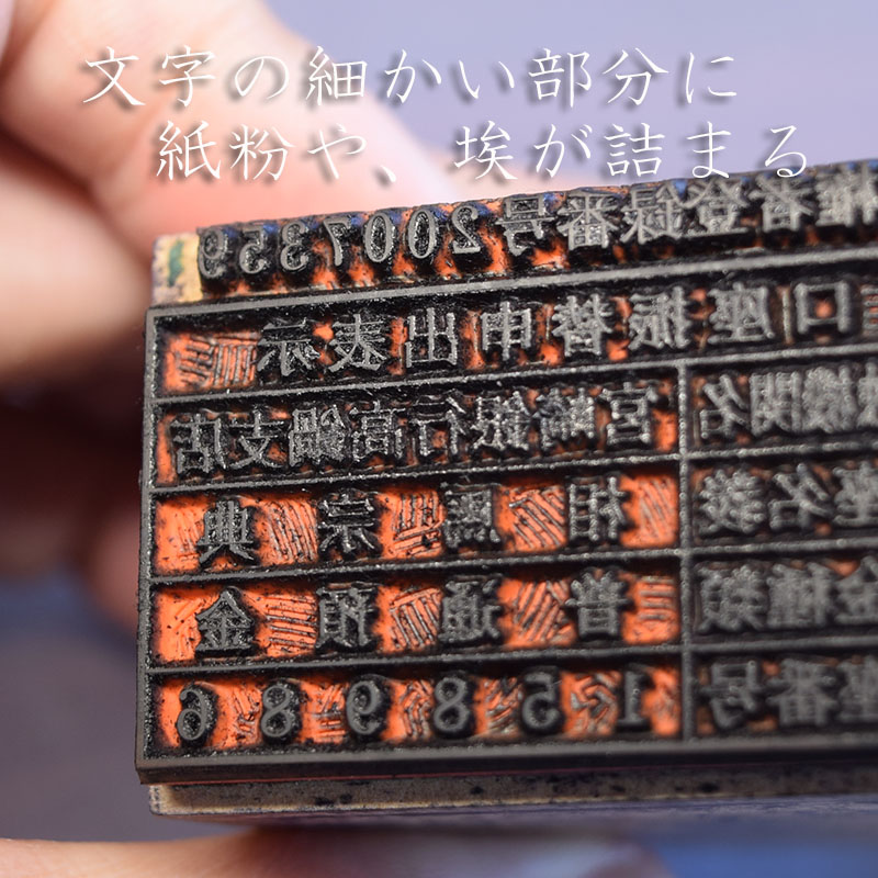 印面の文字の中に紙粉や、埃が溜まり文字が固まりのようになっている場合があります。捺印することで紙面の紙粉や埃が少しづつ付着していきます。