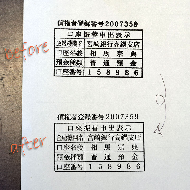 捺印して、印字を確認すると綺麗に捺印できました。
