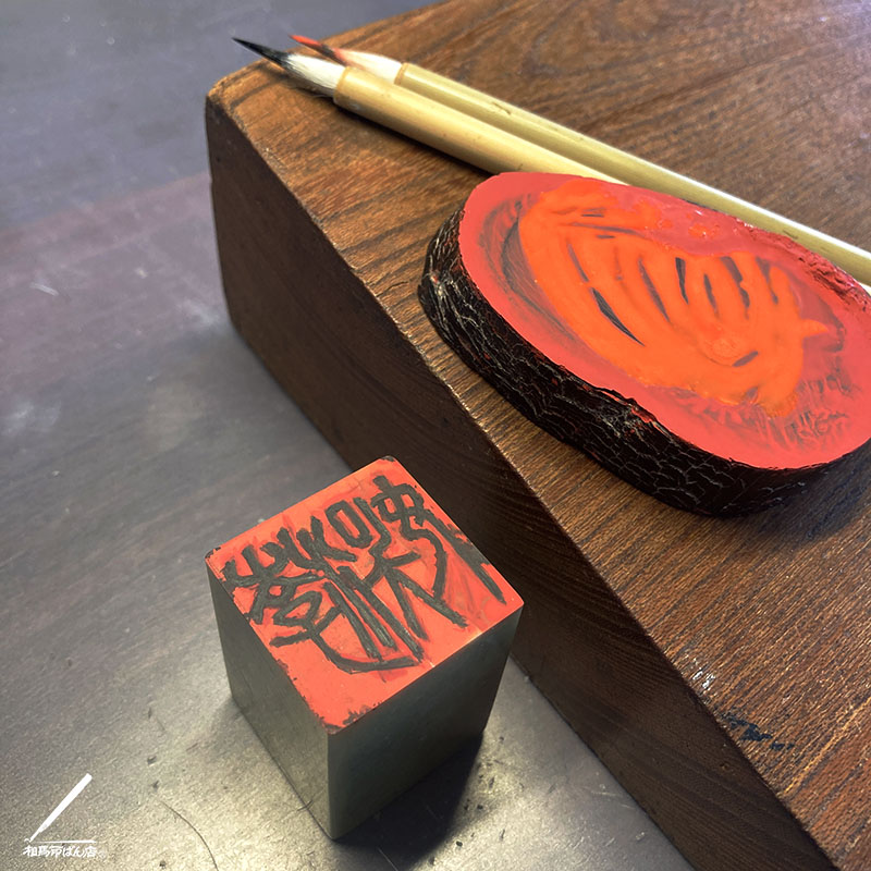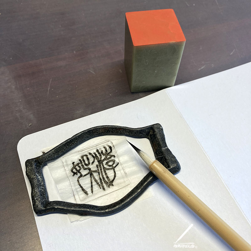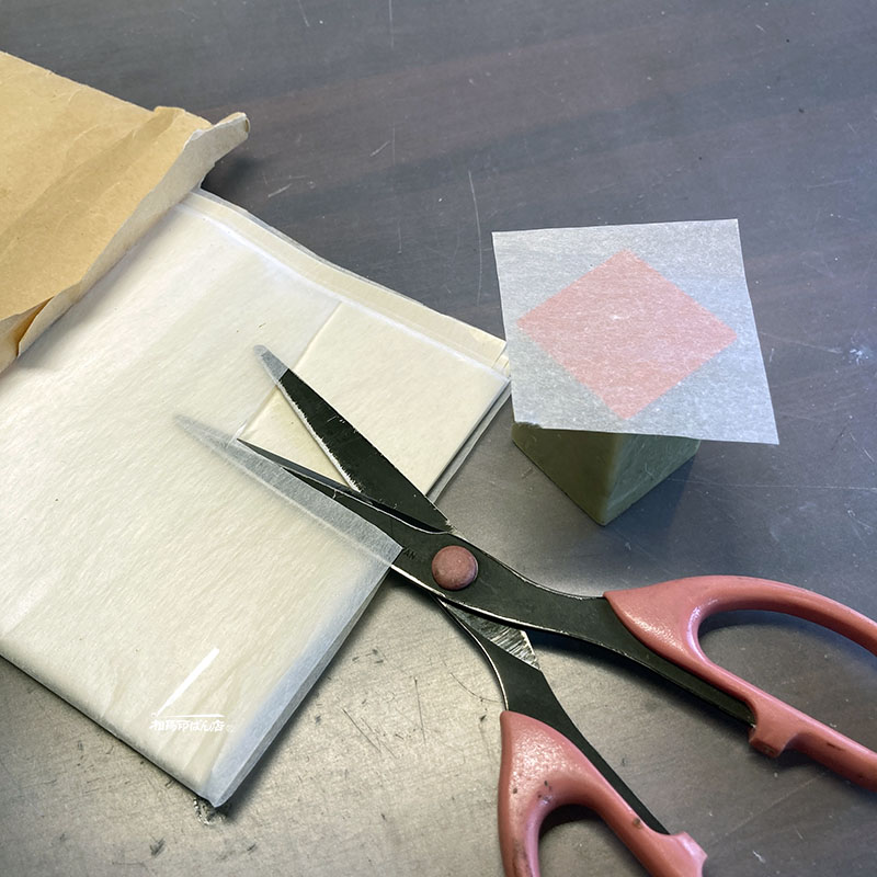 今回、雁皮紙をつかって印面に文字を転写させてみました。