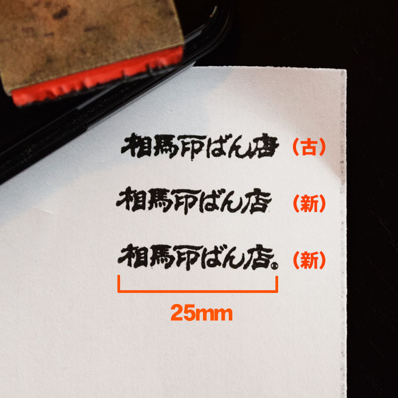 横幅25mm×縦幅4mmの“相馬印ばん店”のゴム印の印面が潰れてきて鮮明に印字できなくなってきたので、新しく作り直しました。