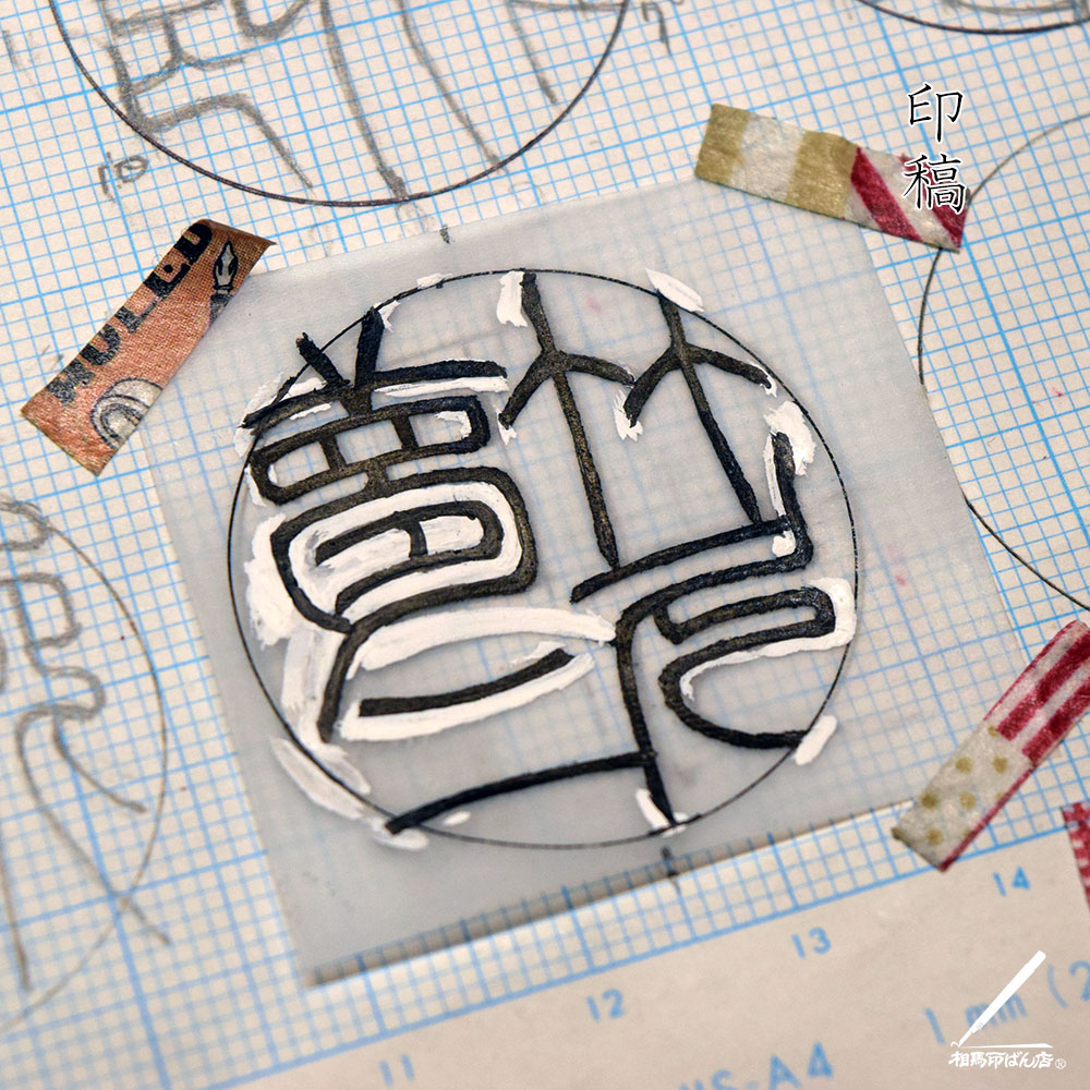 印稿を書き上げて、機械で彫らせる段階で「う~ん、やっぱりこの夢の形は駄目だ」って、なって印稿を修正。結果、一般的な夢の字形が一番落ち着くこととなりました。