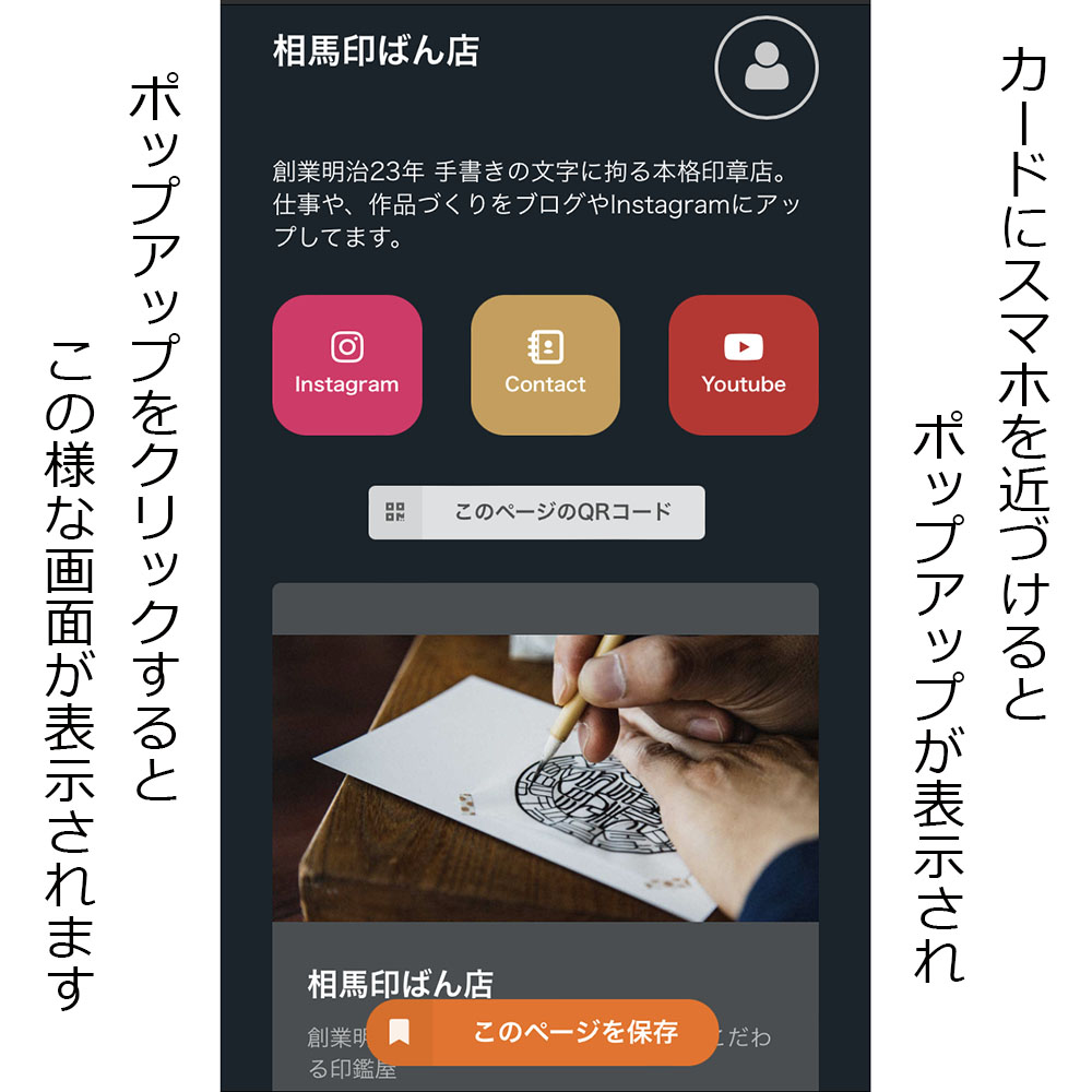 このカードに近づけると、スマホの画面にポップアップが表示され、そのポップアップをクリックすると下の画像が表示されます。