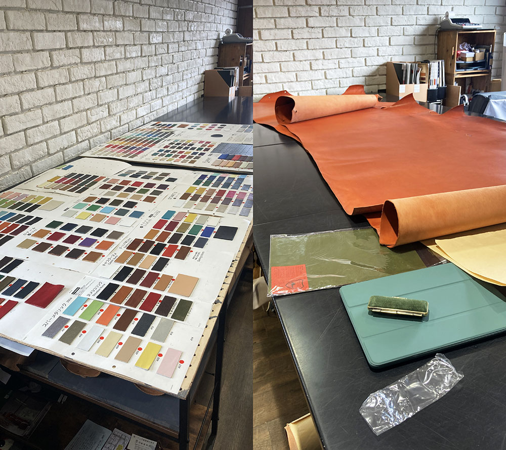 印鑑ケースの表皮となる革を選ぶのに福岡県筑後市にあるハシモト産業㈱様へ伺いました。そこでタンニンと、クロム鞣しの長所短所から革の違いなど丁寧に教えて頂きました。