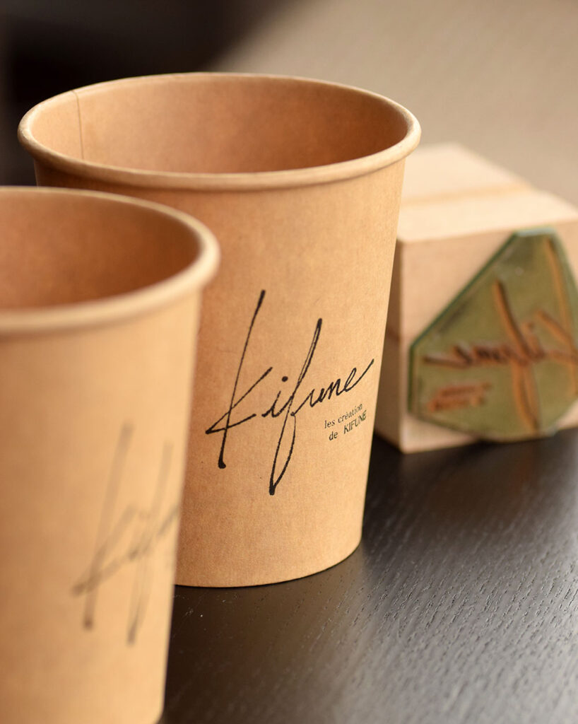 それでも紙コップとなると曲面に捺印するので、印面を当て始める部分と、印面を離す部分で角度が合わないとカットした部分にインクが付着しているとチョコッと線が付いてしまってました。