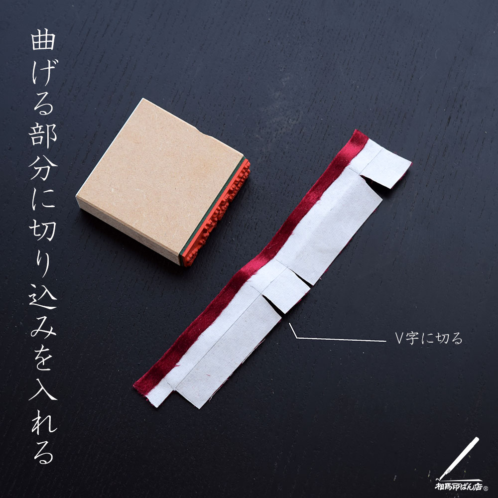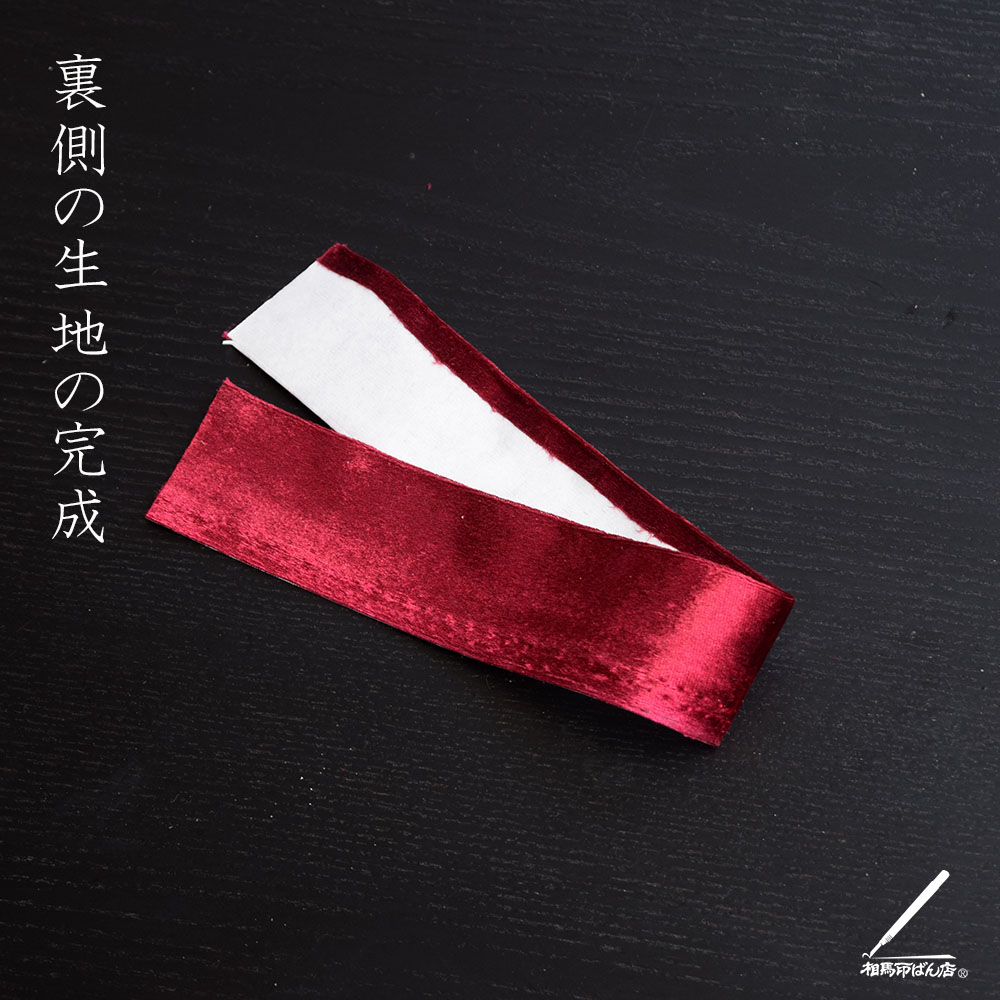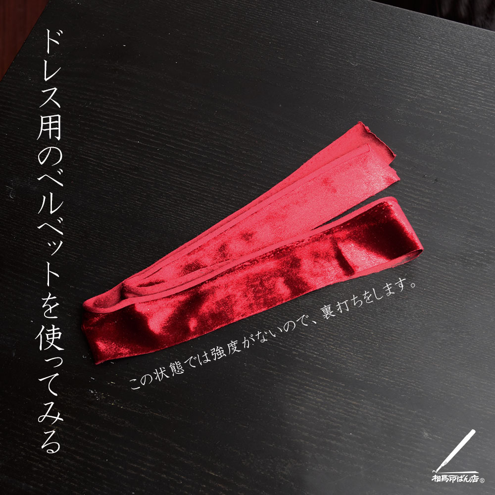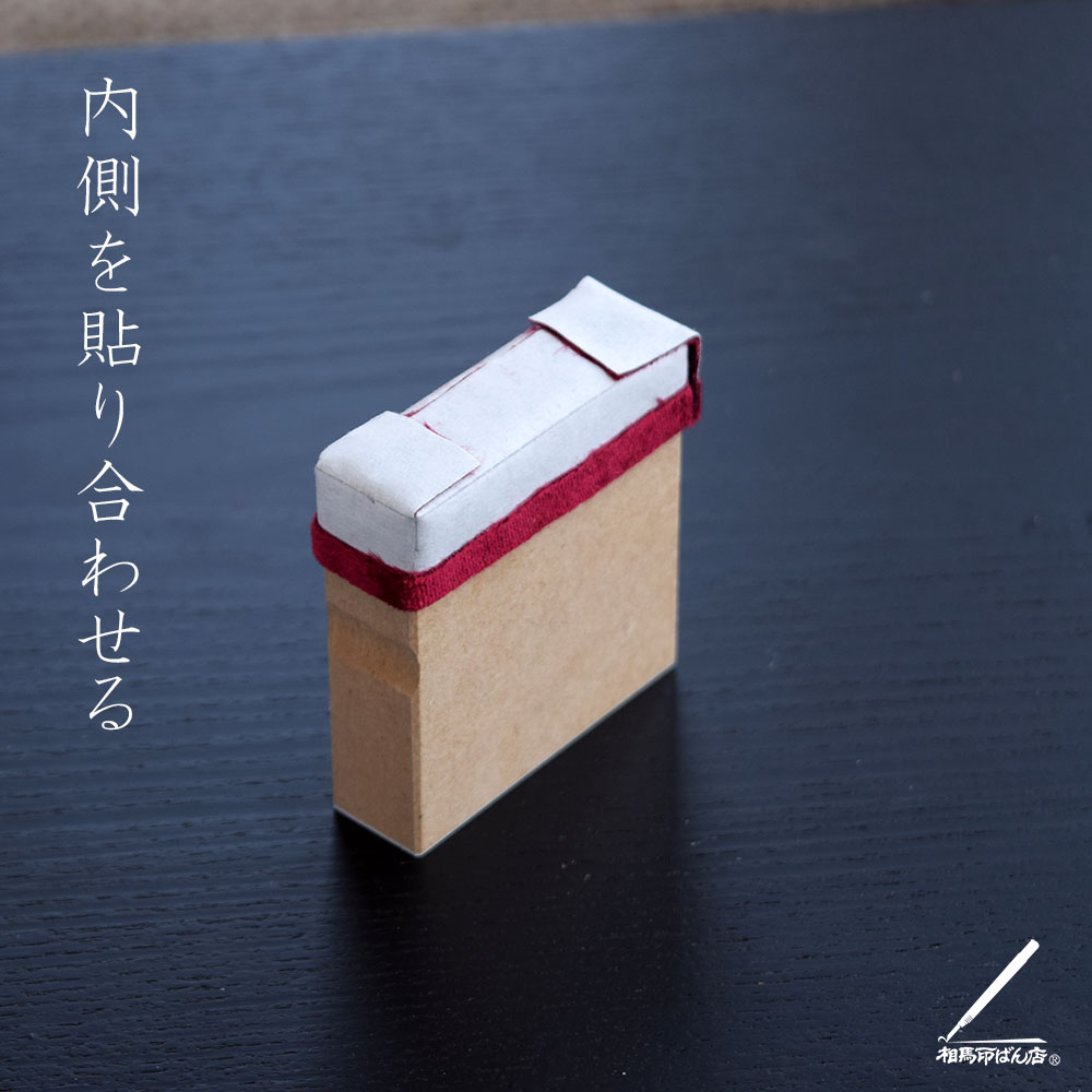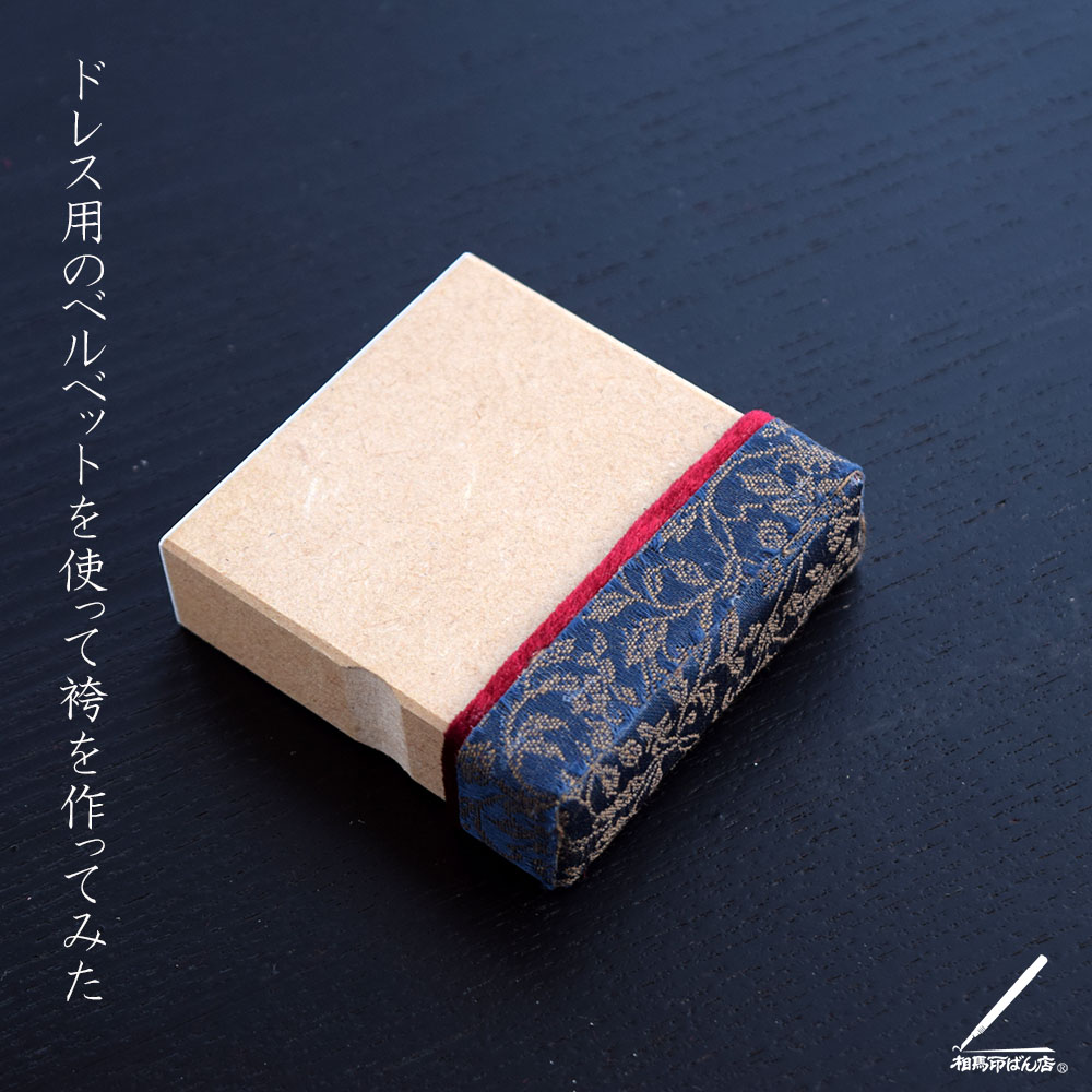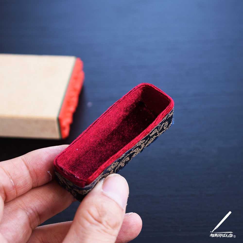 今回は、当店の判子を納めるケースの内張りに使う赤いベルベット生地を使って作ってみました。