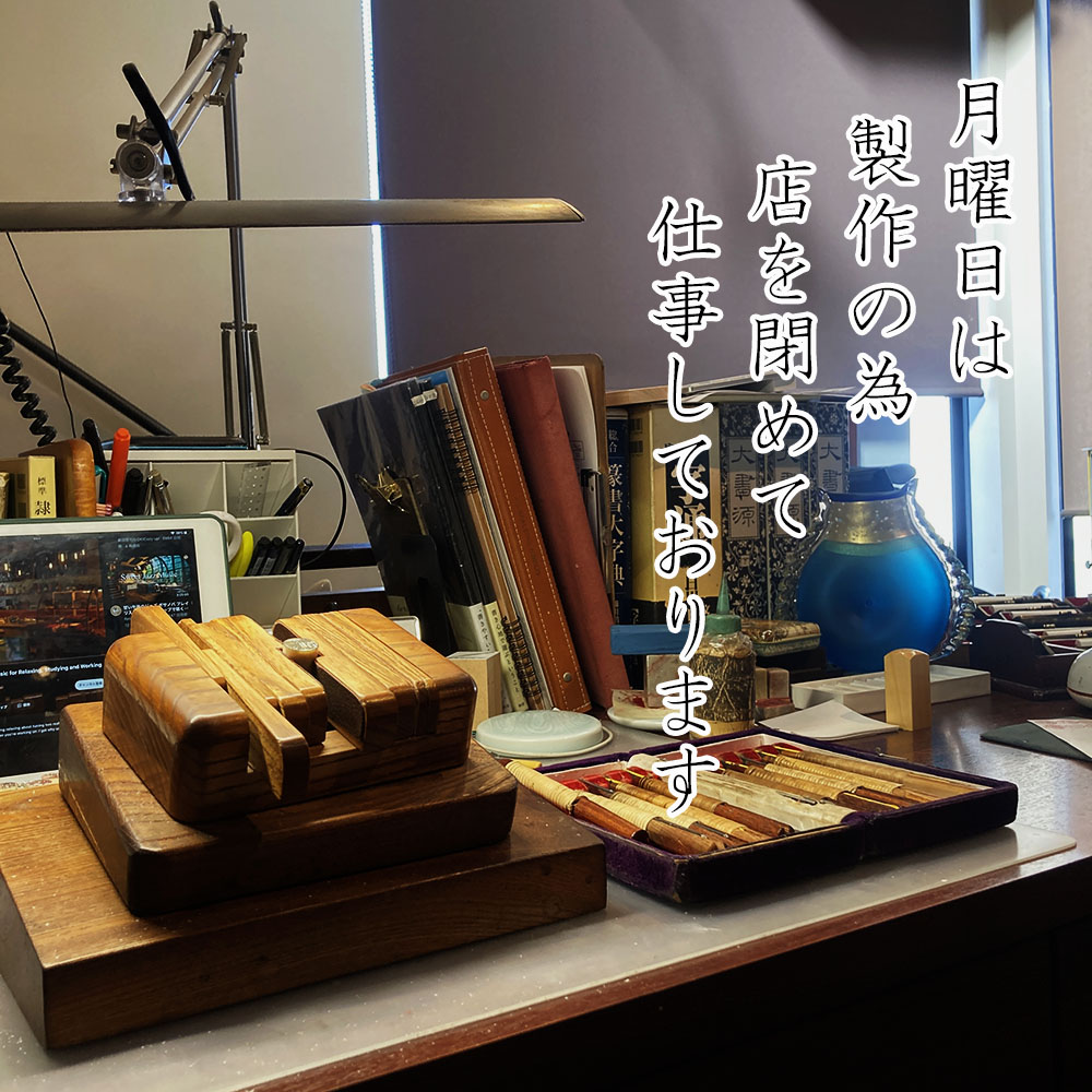 定休日は、製作に専念させて頂いております。更に金・土の15時以降も店を閉めて製作時間にあてさせて頂いています。
