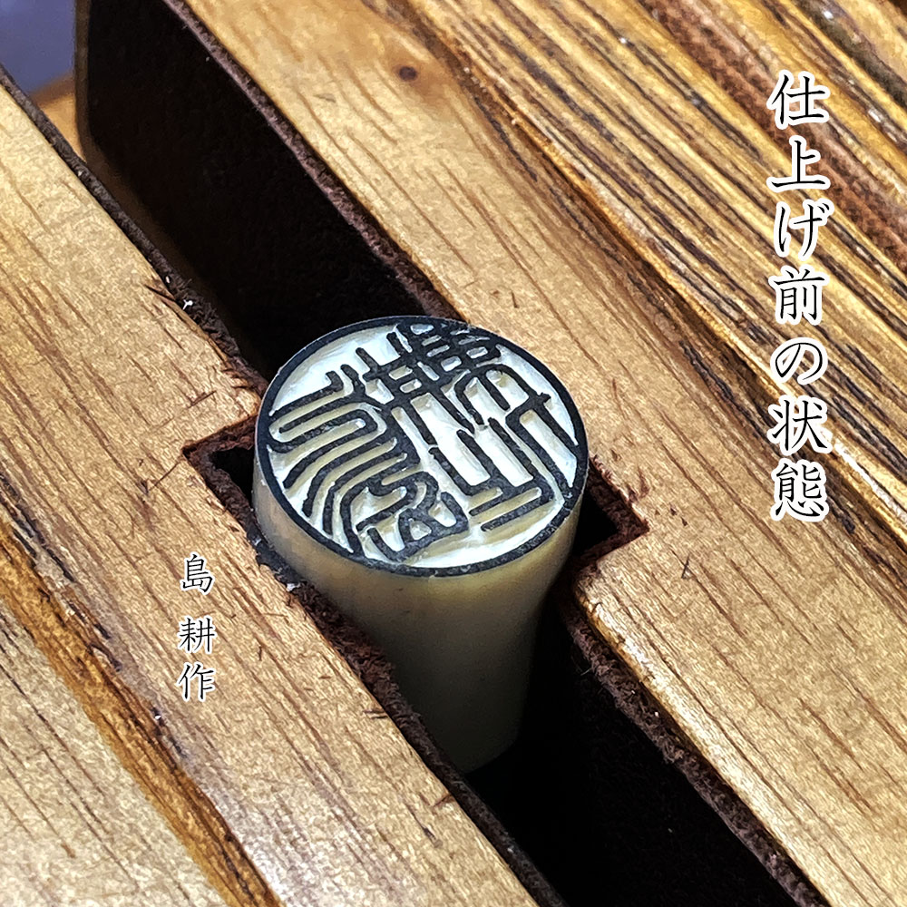 画像は、「島 耕作」と入れてます。仕上げ前の状態なので線が太くガタガタです。これから仕上げ刀で線を細く滑らかな線になるように削いでいきます。