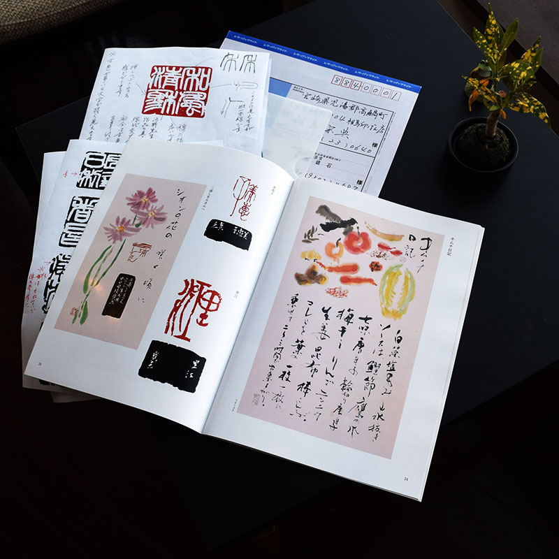 今月は、印稿を書いて北村鐘石先生に送れました。その添削と、参考資料とともに東京で開催されてた月歩展の作品集が添えられてました。