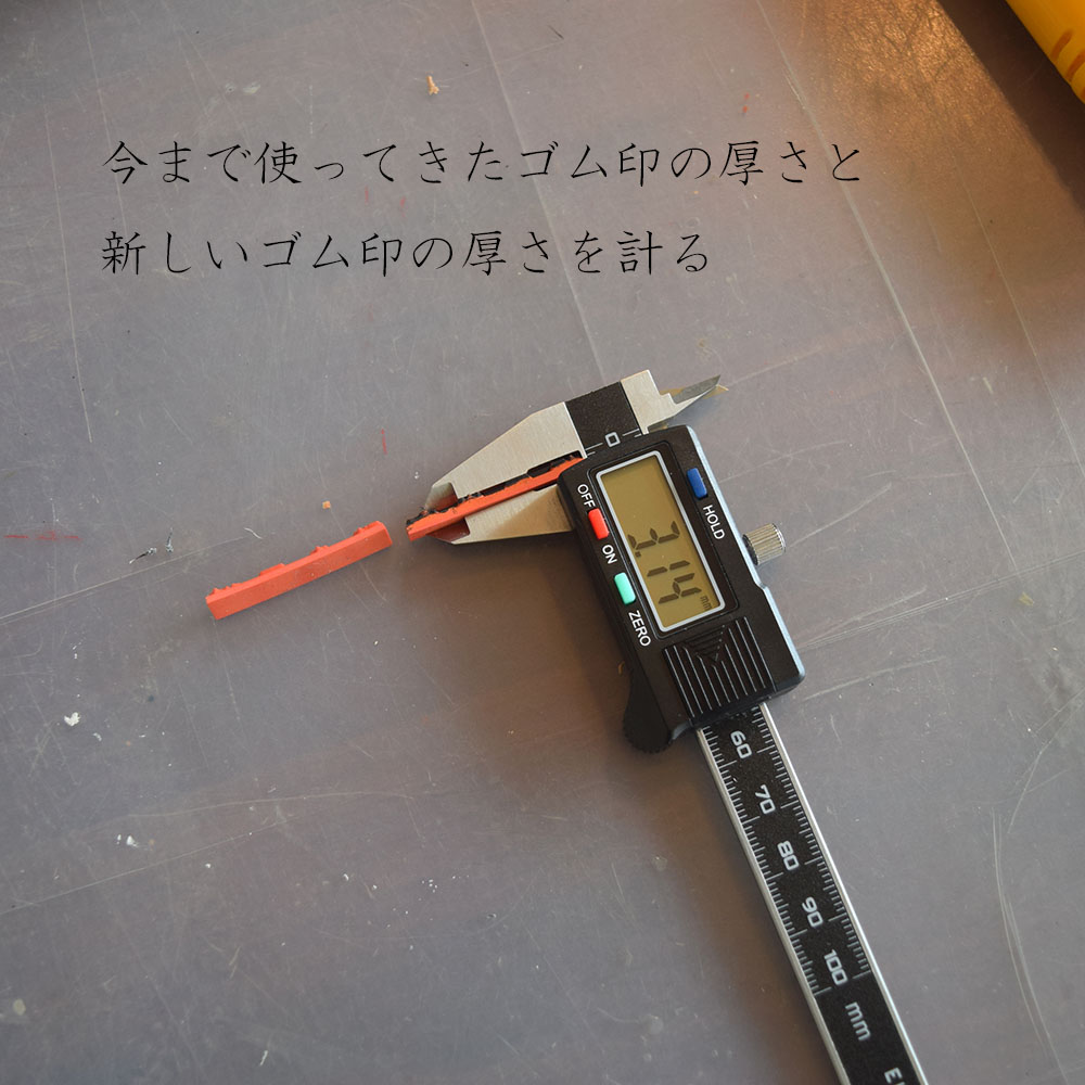 ゴム印は、作るたびにゴム厚が0.1~0.3mmほど異なってきます。