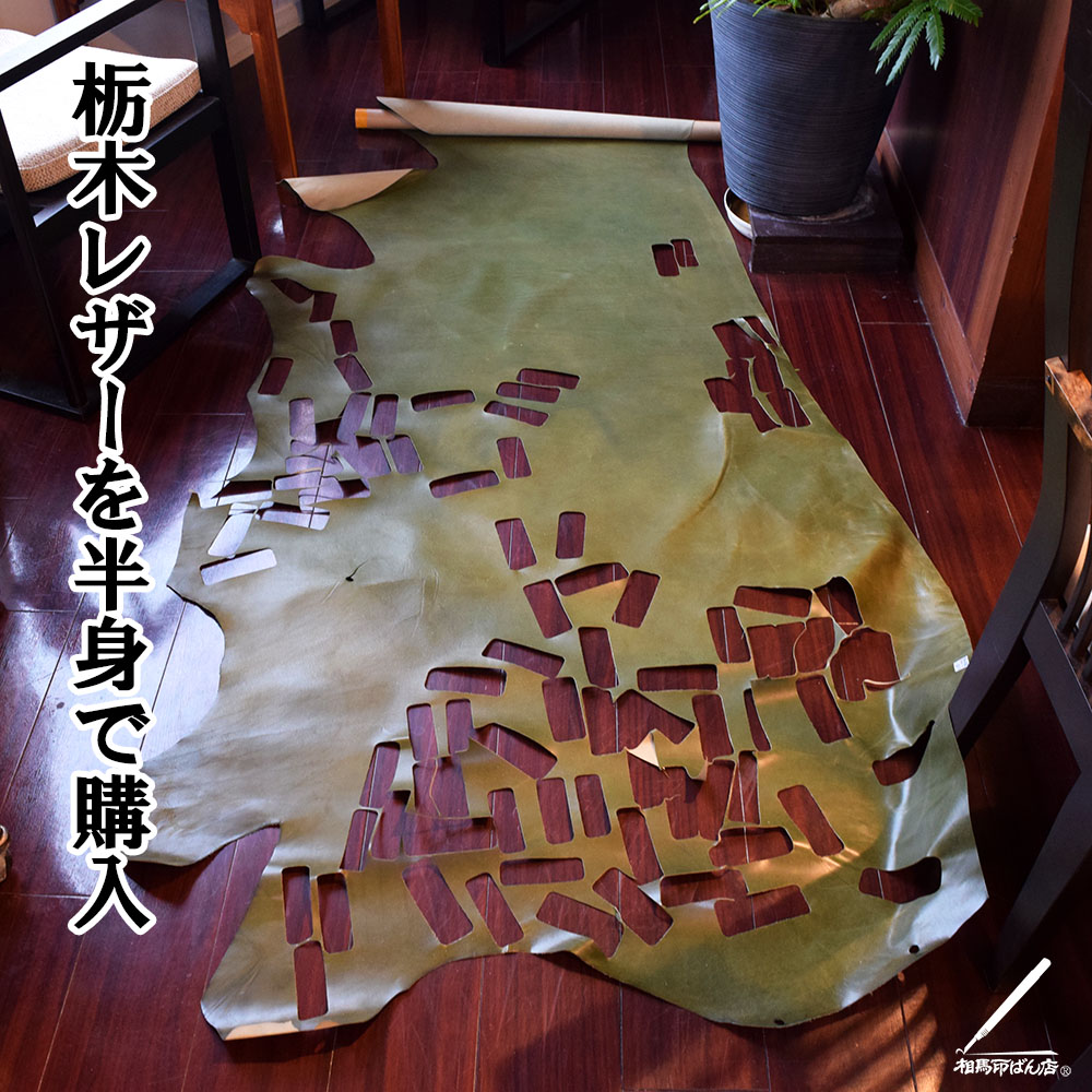 相談させて頂き、最終的に選んだのが栃木レザーの緑色ヌメ革でした。