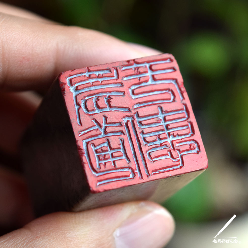字入れした文字より大幅に太く刻しました。また、今回の石は頂いた石でとても刻し易い石です。大事に使わないとと思ってましたが、大量にあるので積極的に使っていこうと思います。