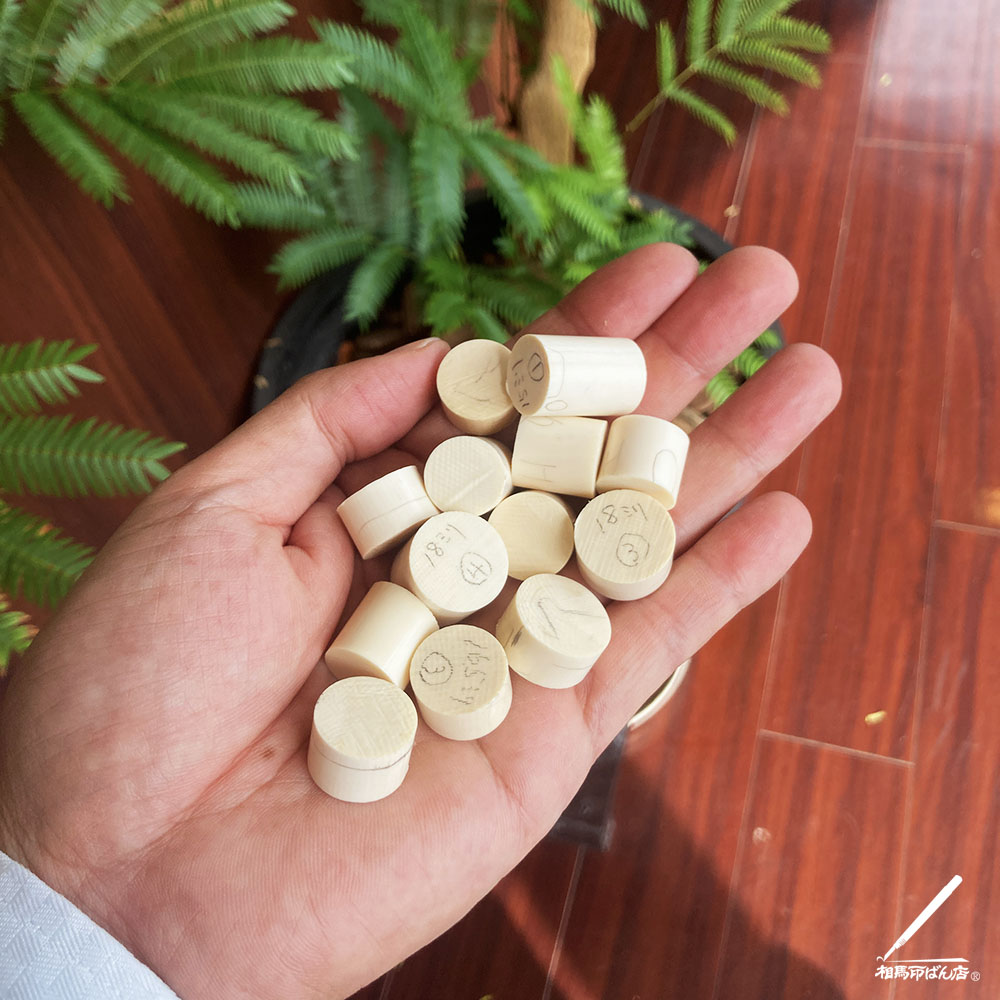 加工したさいに出る印材にならない端材もすべて保管しているとのことだったので、端材を購入させて頂くこととなりました。