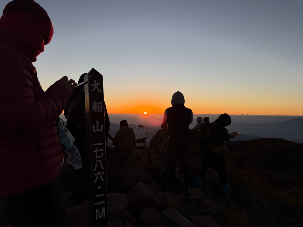 翌朝4時から大船山の山頂で御来光をみるので登りましたが、登山道はがれ場の急登で初心者としてはキツかった。
