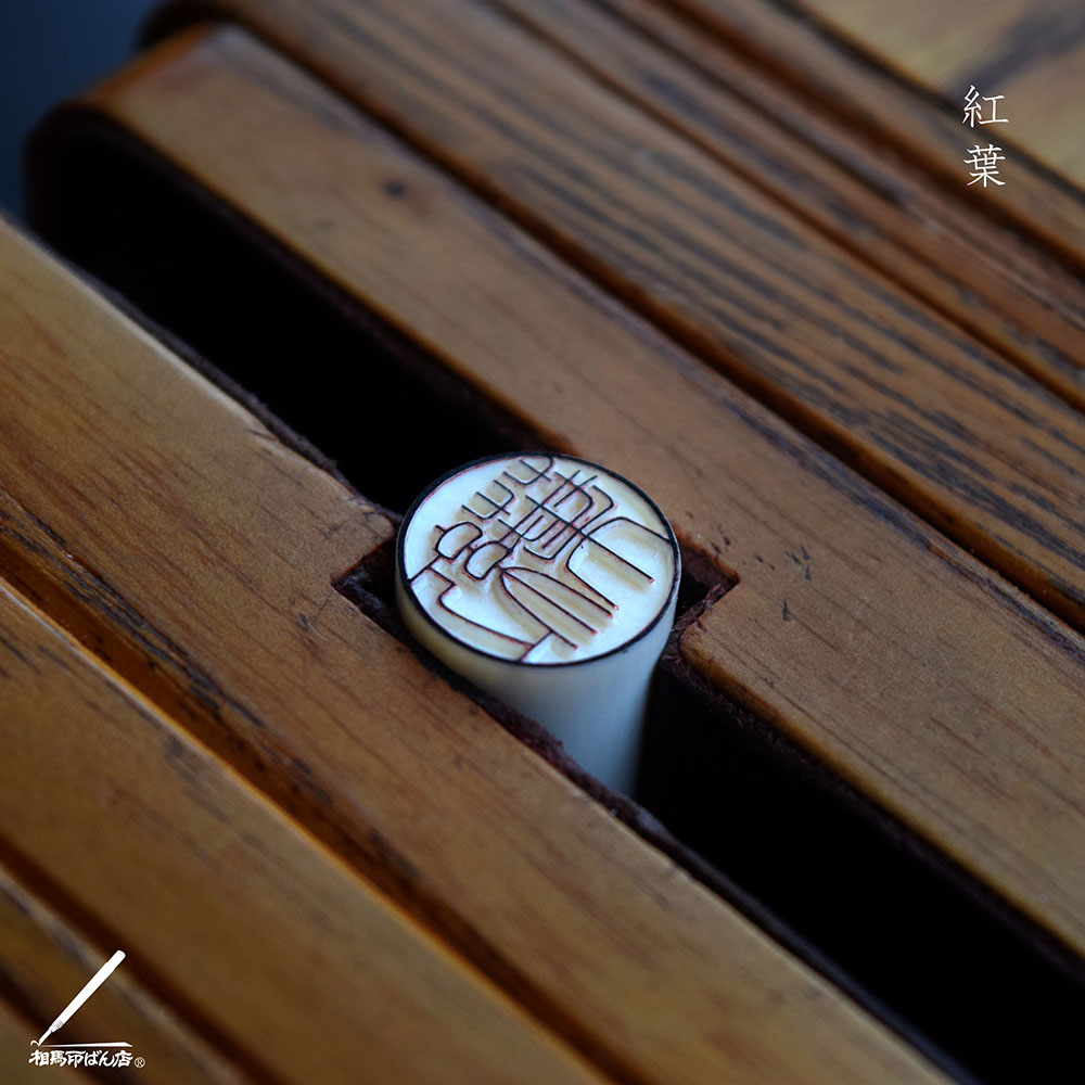 銀行印のサイズに「紅葉」と彫る