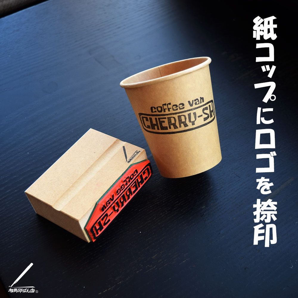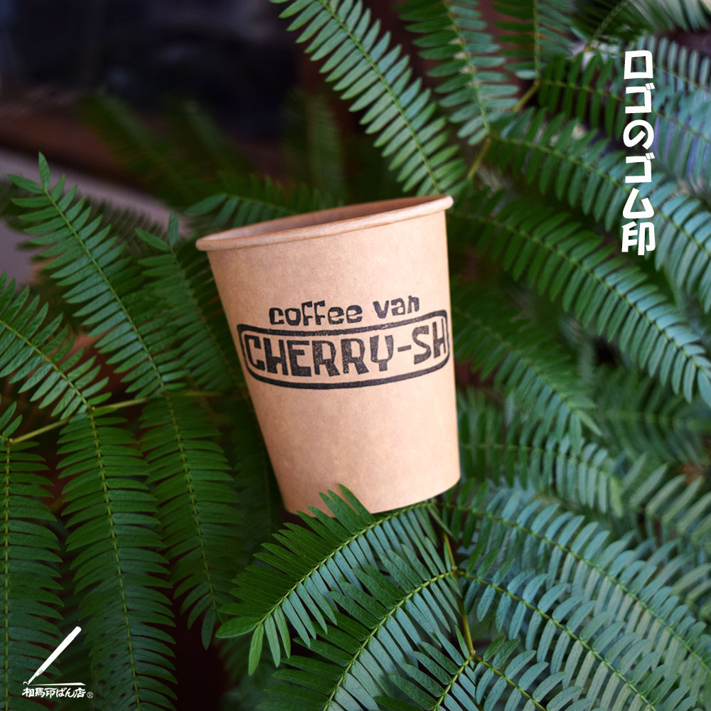 茨城県守谷市でカフェをされているチェリッシュ様から紙コップに捺印するロゴのゴム印を御注文い頂きました。